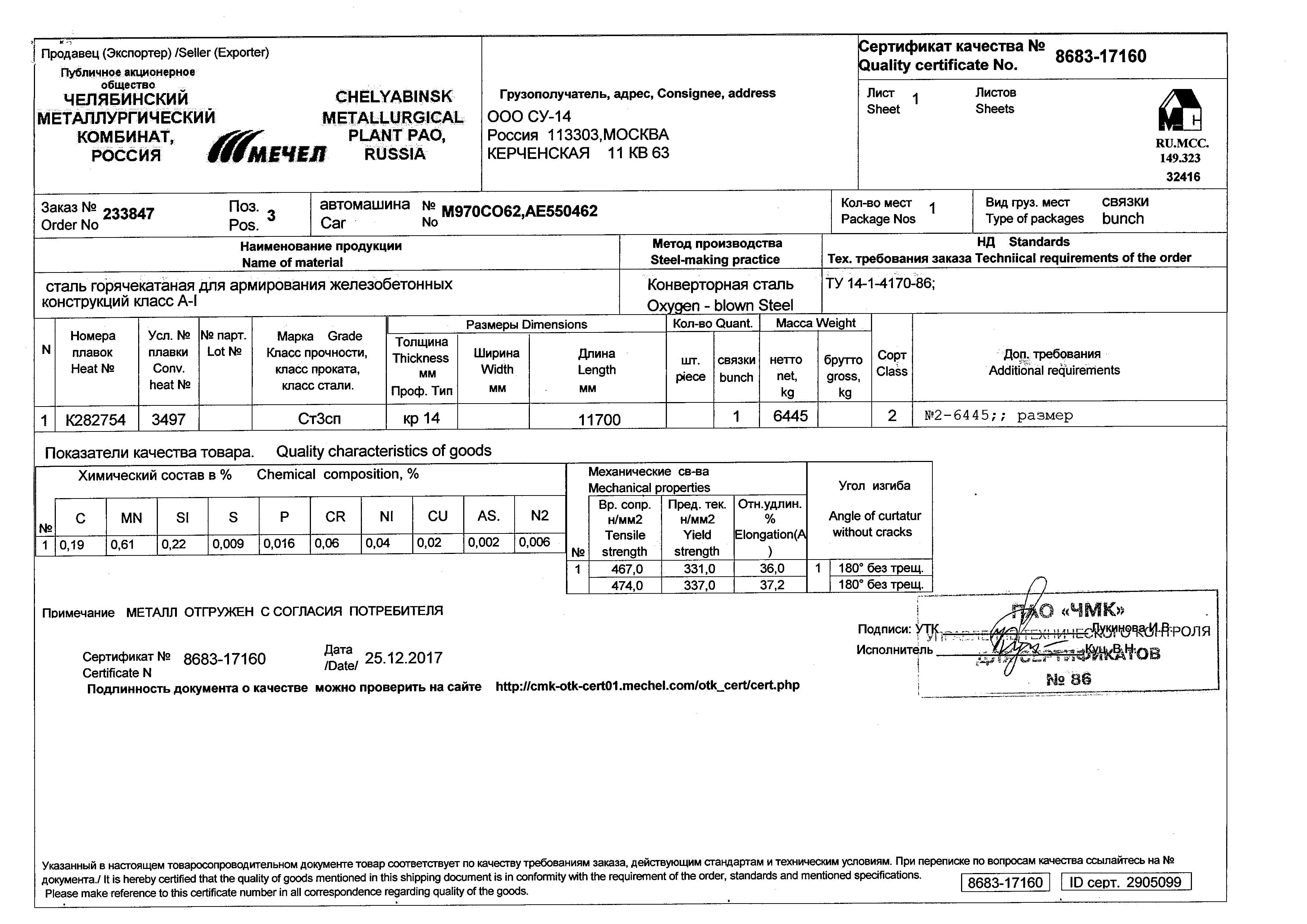 С каждой товарной позицией мы предоставляем все сертификаты и паспорта качества, а также товарно-транспортную накладную.