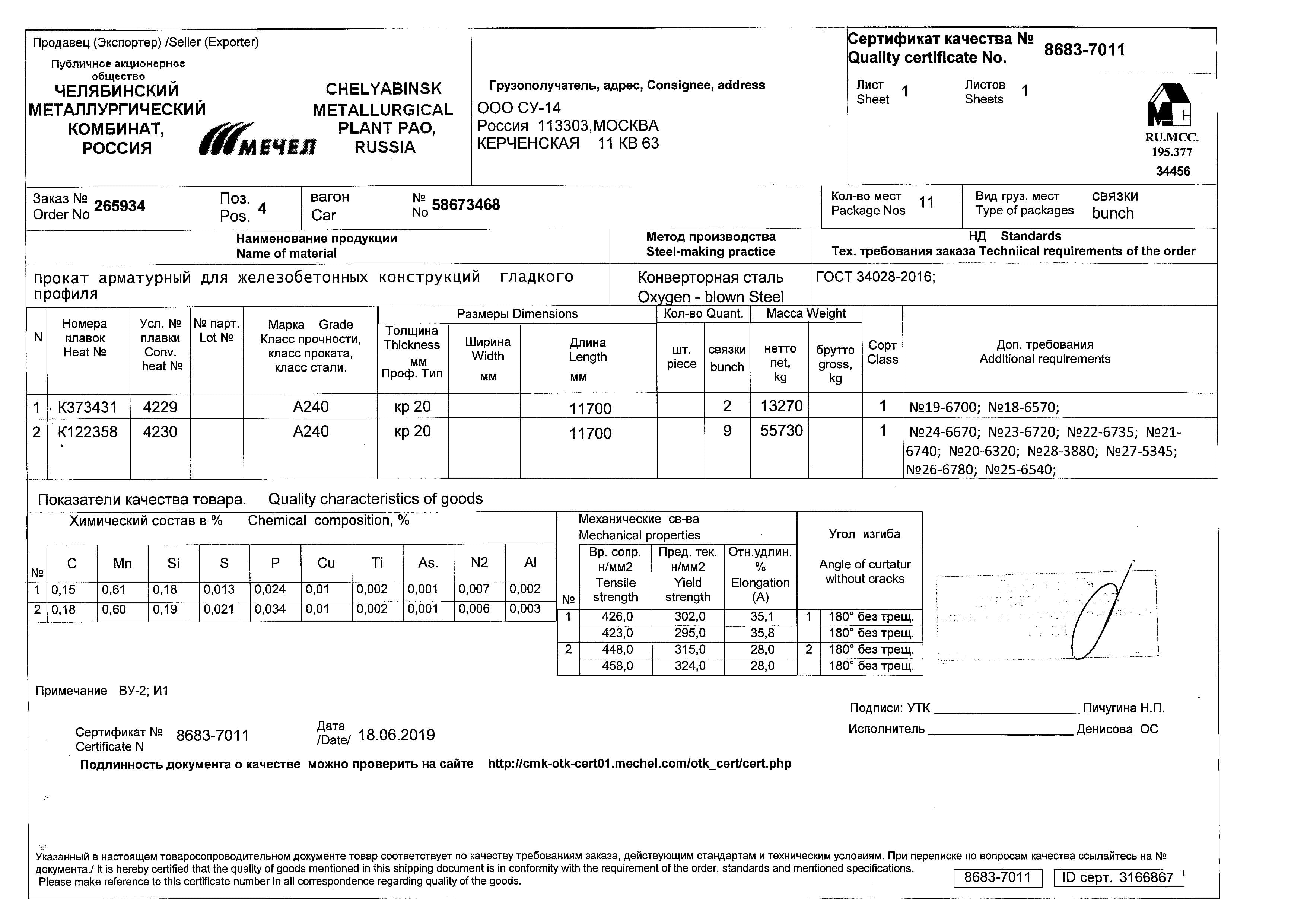 С каждой товарной позицией мы предоставляем все сертификаты и паспорта качества, а также товарно-транспортную накладную.