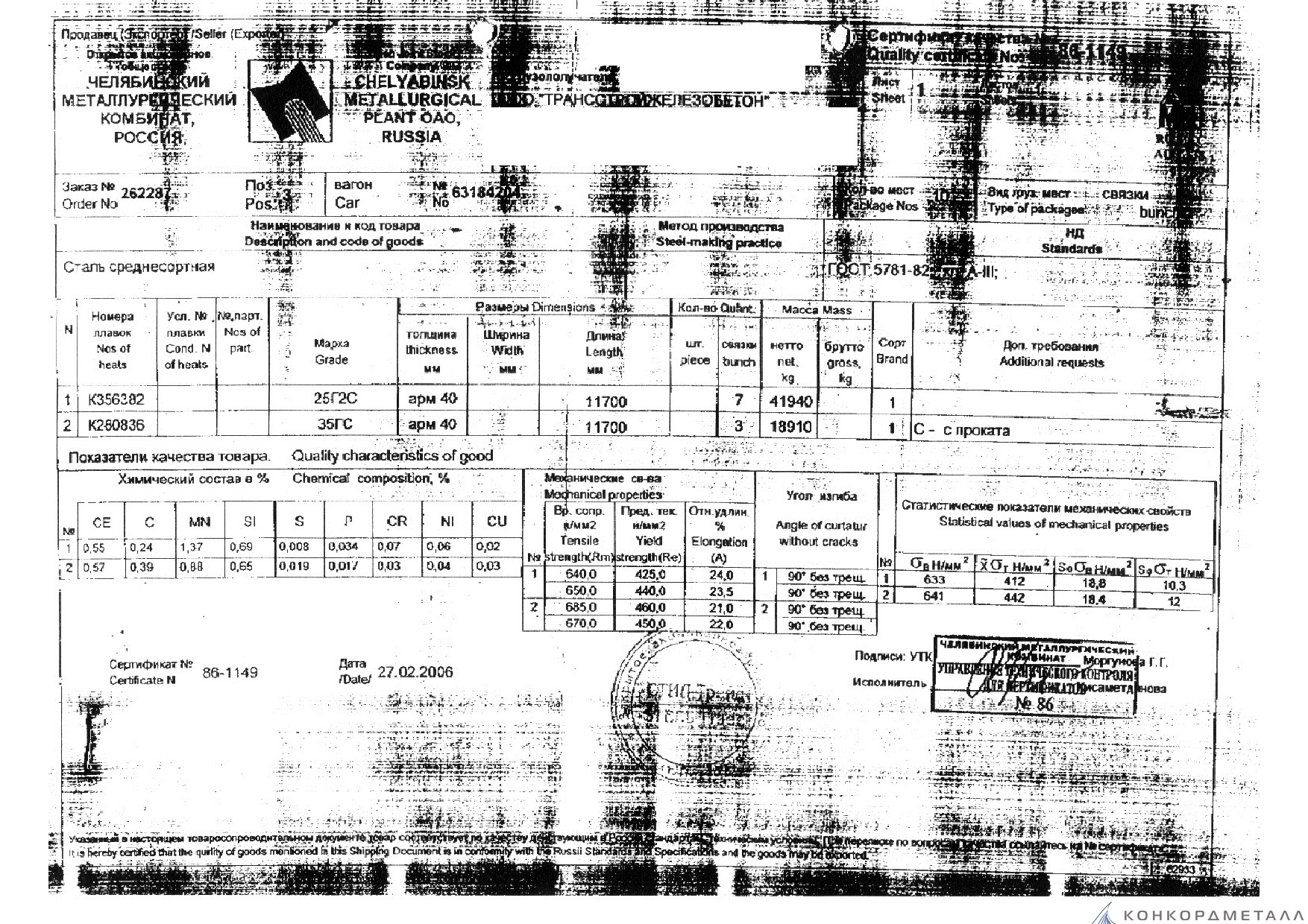 С каждой товарной позицией мы предоставляем все сертификаты и паспорта качества, а также товарно-транспортную накладную.