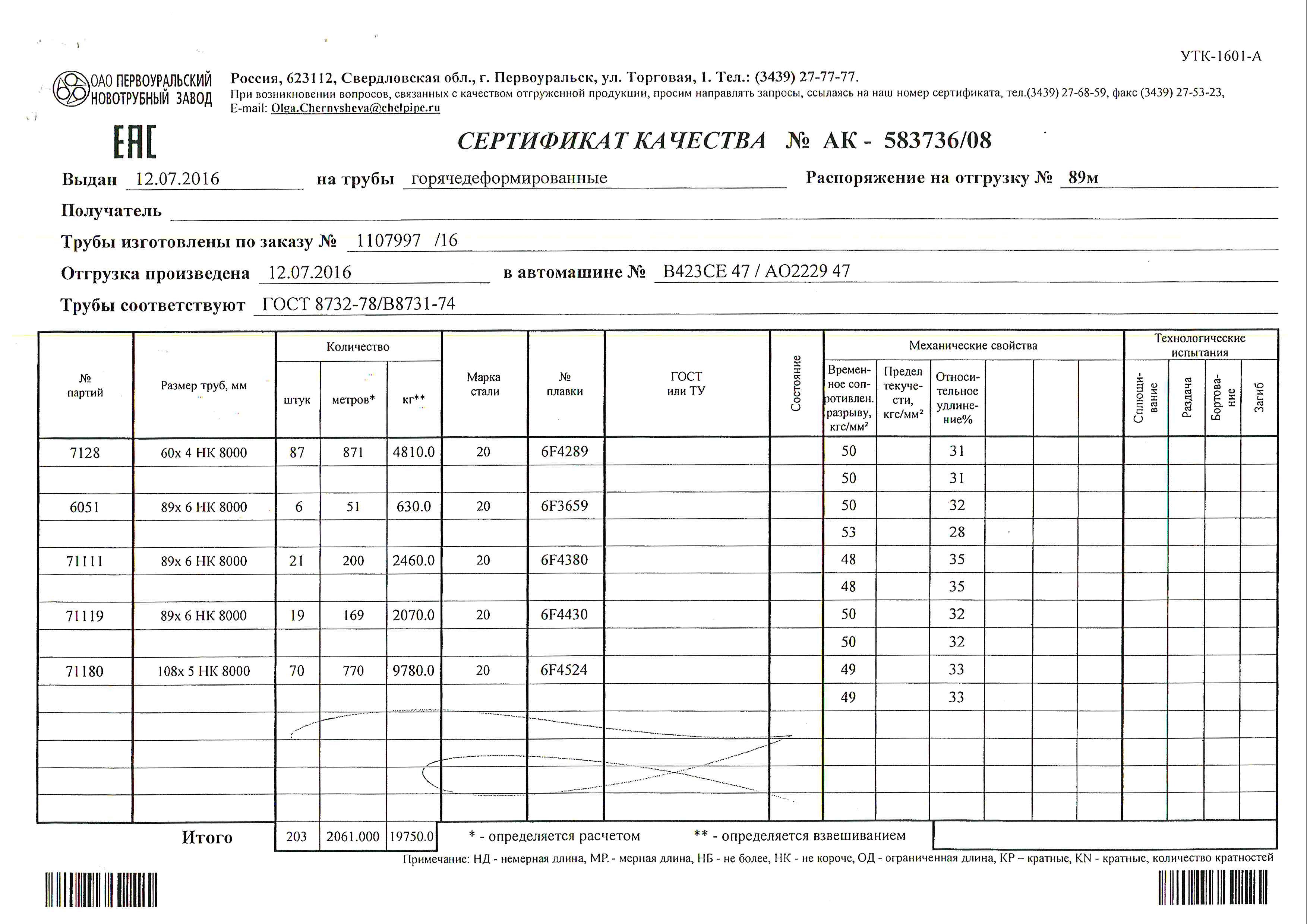 С каждой товарной позицией мы предоставляем все сертификаты и паспорта качества, а также товарно-транспортную накладную.