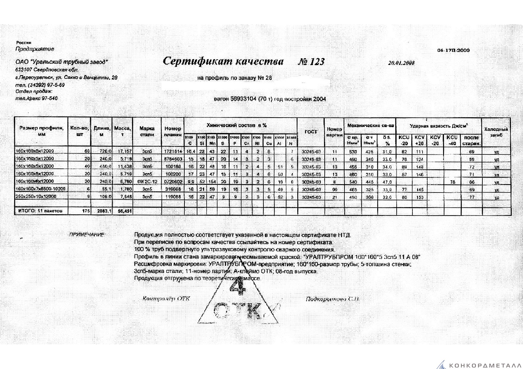 С каждой товарной позицией мы предоставляем все сертификаты и паспорта качества, а также товарно-транспортную накладную.