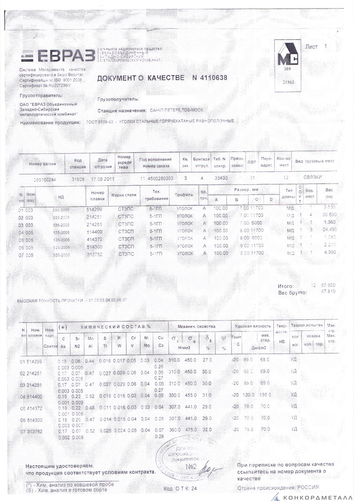 С каждой товарной позицией мы предоставляем все сертификаты и паспорта качества, а также товарно-транспортную накладную.